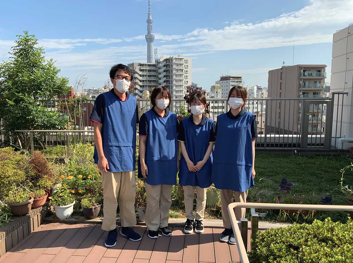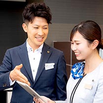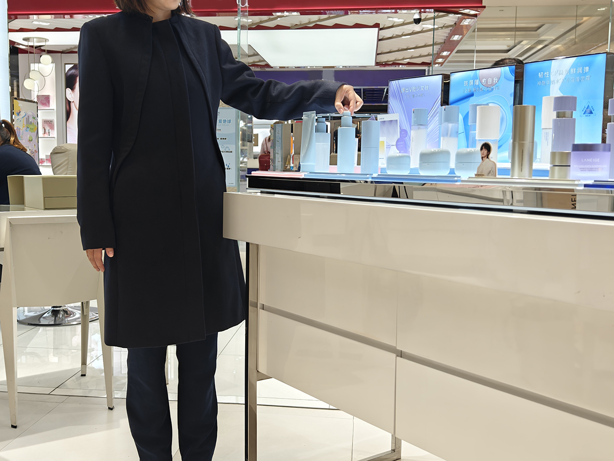 旅馆翻新之际选用了——灰米色夹克搭配珍珠饰品,利落的剪裁透露出优雅大方,给前台员工带来了整洁与安心的印象。